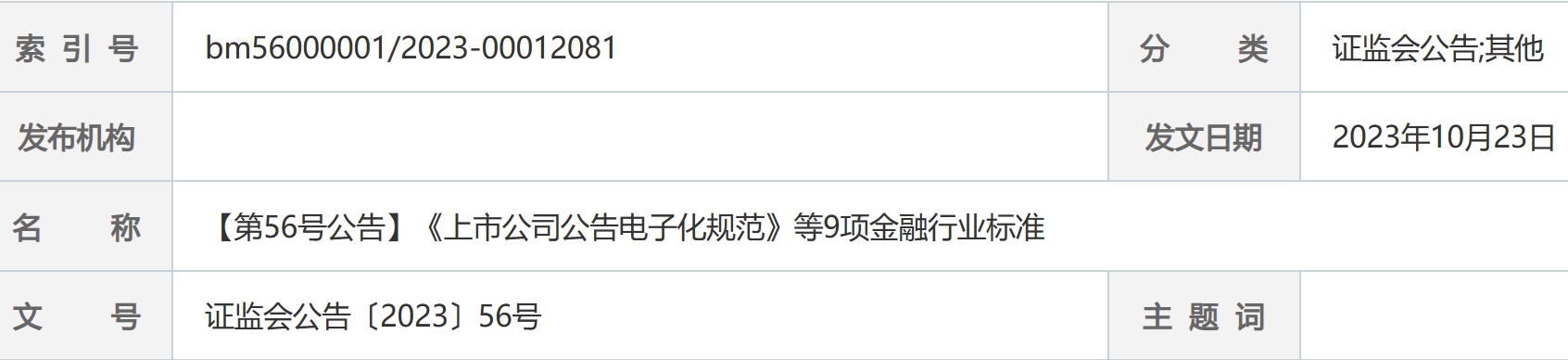 【第56号公告】《上市公司公告电子化规范》等9项金融行业标准