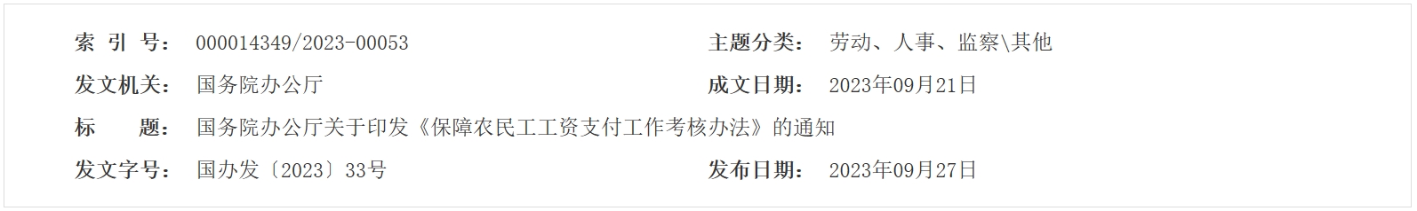 国务院办公厅关于印发《保障农民工工资支付工作考核办法》的通知