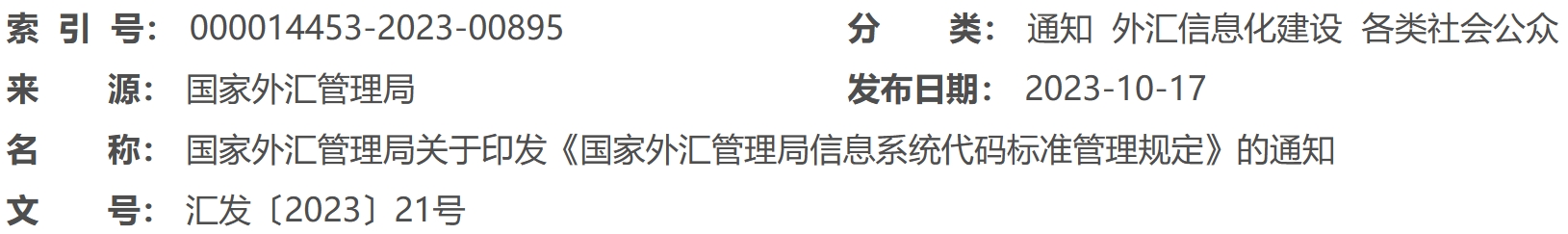 国家外汇管理局关于印发《国家外汇管理局信息系统代码标准管理规定..