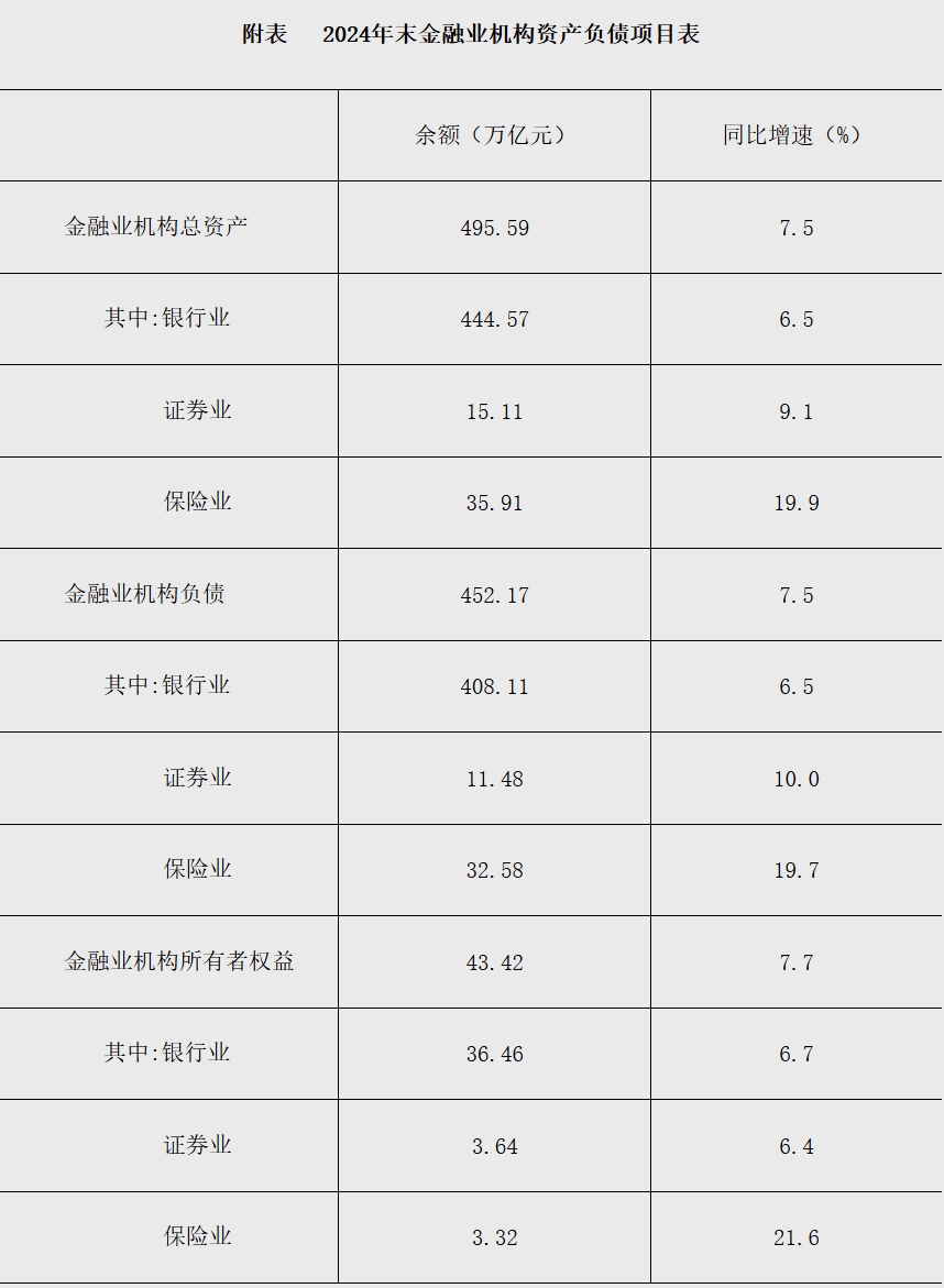 2024年末金融业机构总资产495.59万亿元