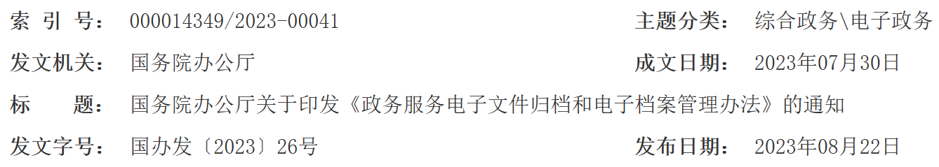 国务院办公厅关于印发《政务服务 电子文件归档和电子档案管理办法..