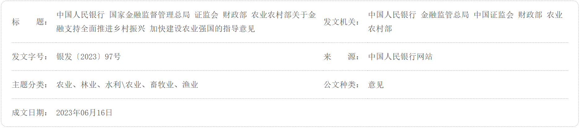 中国人民银行、金融监管总局、中国证监会、财政部、 农业农村部印发..