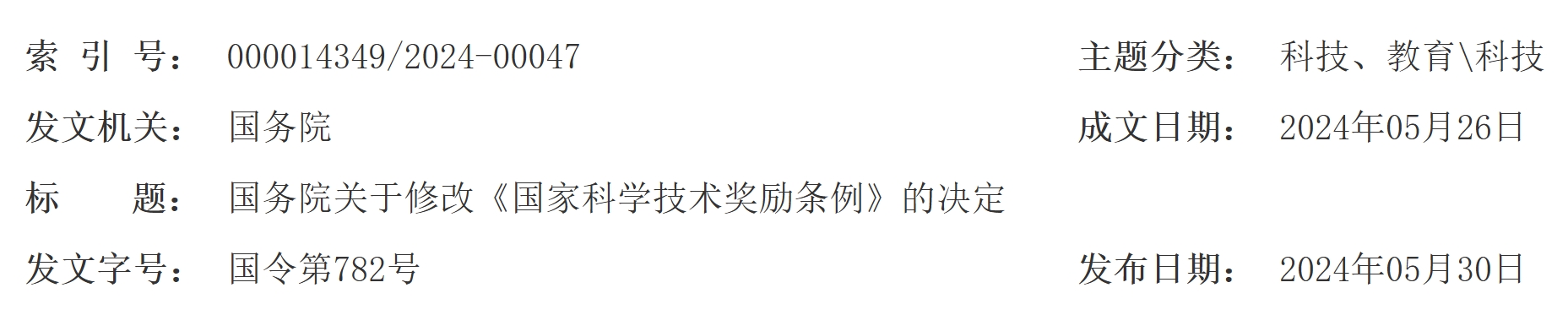 国务院关于修改《国家科学技术奖励条例》的决定