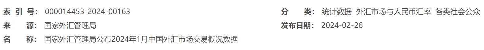 国家外汇管理局公布2024年1月中国外汇市场交易概况数据