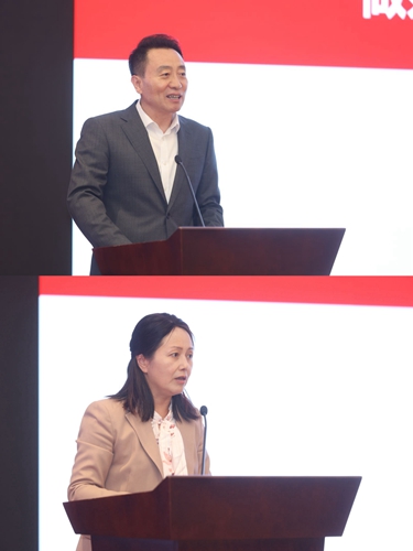 从上→下依次是:中国农业银行上海市分行党委书记、行长韩国强讲话,中国银行业协会养老金委员会主任、中国农业银行养老金融中心总裁史静欣主持会议