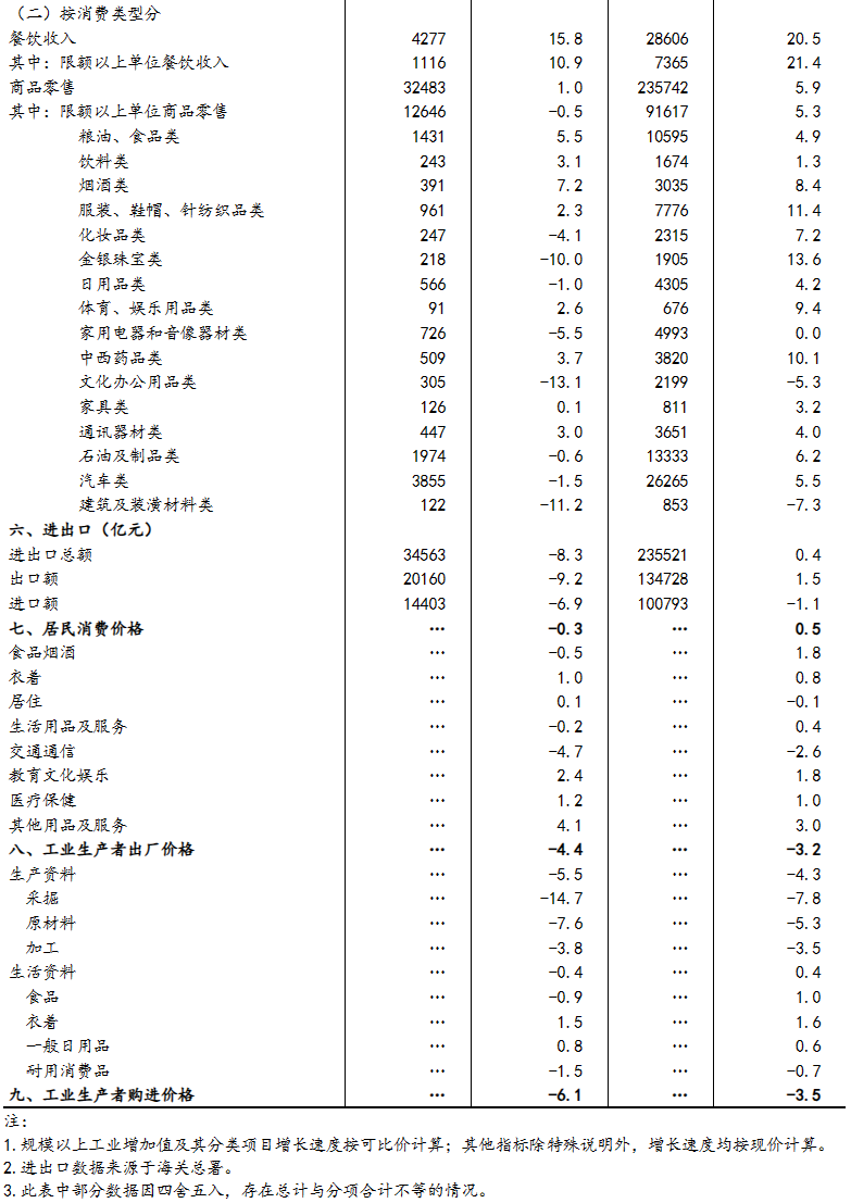 (1)规模以上工业增加值及其分类项目增长速度按可比价计算,为实际增长速度;其他指标除特殊说明外,均按现价计算,为名义增长速度。