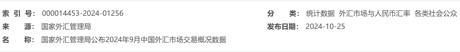 国家外汇管理局公布2024年9月中国外汇市场交易概况数据
